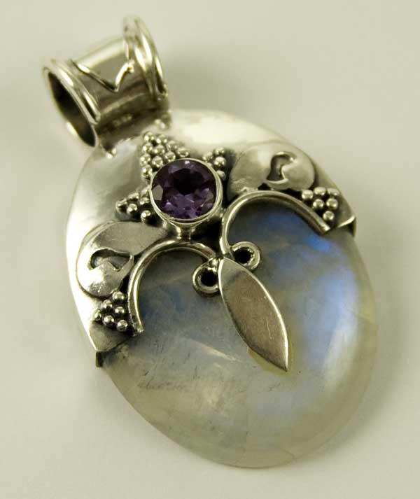 Pendant Oval Fancy Top Amethyst And Moonstone Size From Top L5cm 925 Sterling Silver