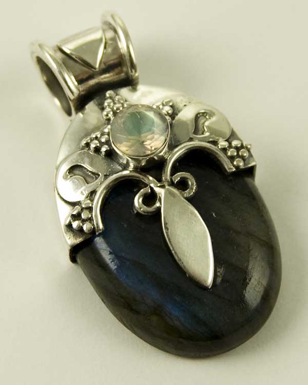 Pendant Oval Fancy Top Moonstone And Labradorite Size From Top L5cm 925 Sterling Silver