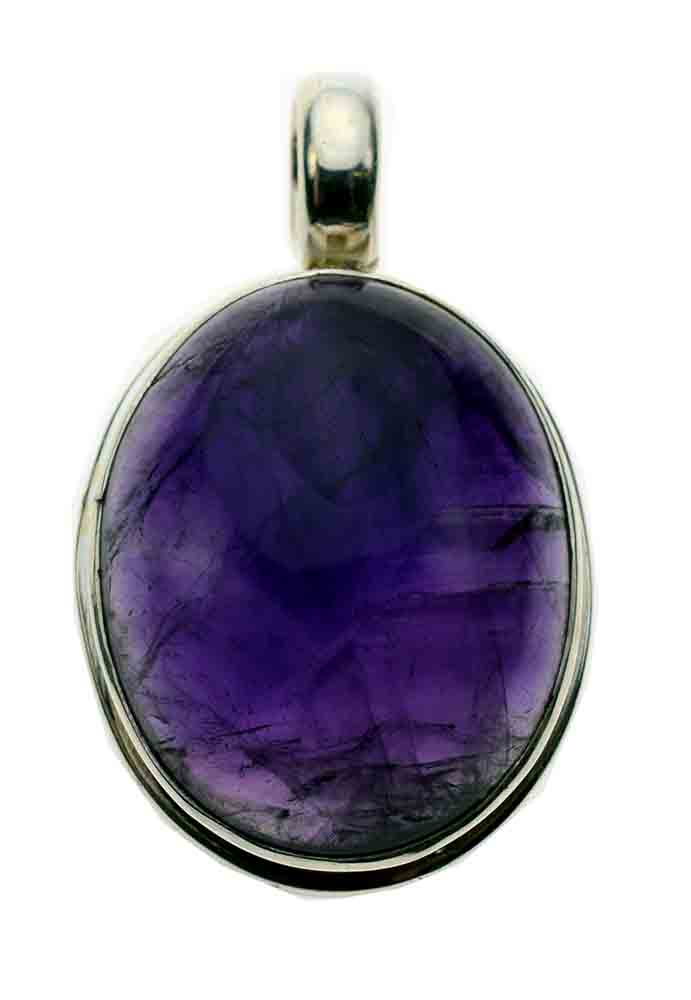 Pendant Oval Thick Set Amethyst Cabochon Stone Size From Top L3cm 925 Sterling Silver
