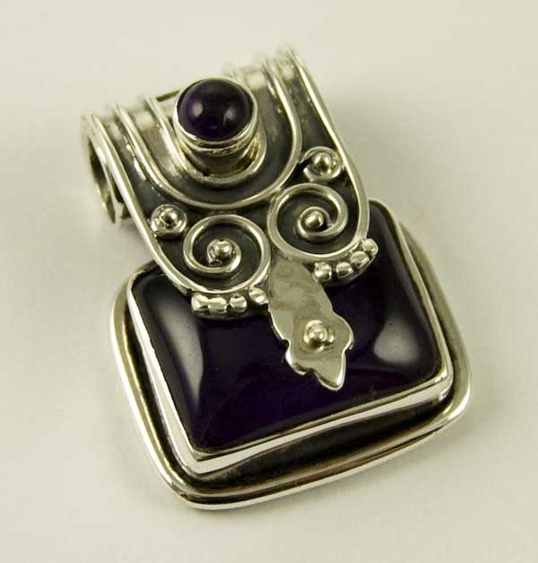 Pendant Square Amethyst Cabochon Stone With Circle Stone Size From Top L2.5xw2cm 925 Sterling Silver