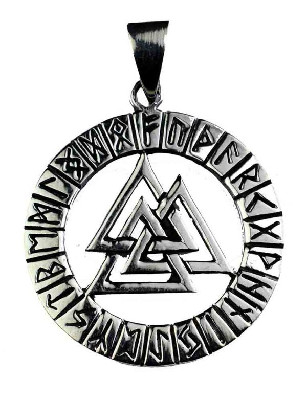 Sterling Silver 925 Hallmarked Pendant Viking Valknut with Rune Surround 3cm H