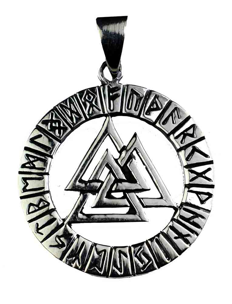 Sterling Silver 925 Hallmarked Pendant Viking Valknut with Rune Surround 3cm H