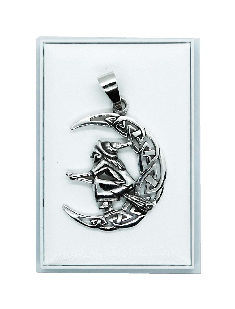 Silver Pendant Witch on Moon 4cm 925 Sterling Silver 925 Hallmarked