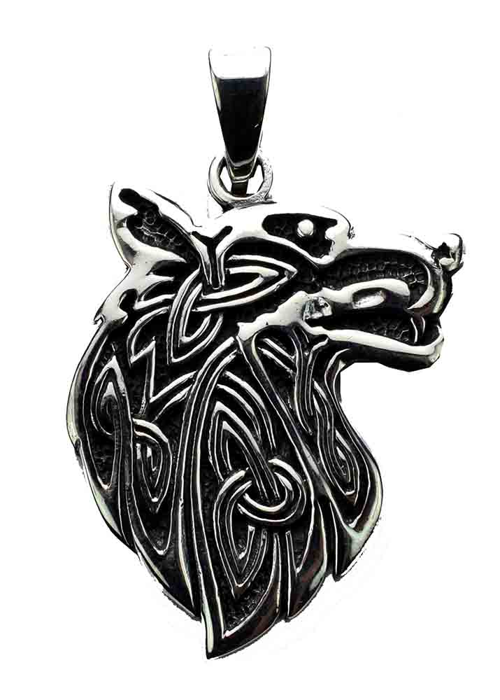 Pendant Wolf Head With Celtic Design L4cm 925 Sterling Silver 925 Hallmarked