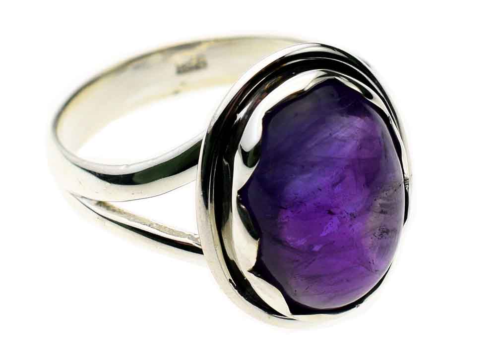 Ring Amethyst Cab Oval Stone With Wavy Edging 925 Sterling Silver 925 Hallmarked