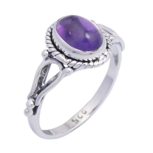 Ring Amethyst Oval Raised Stone With Rope Style Border And Hook Design At The Sides. Approx Weight Is 7 Grams 925 Sterling Silver 925 Hallmarked