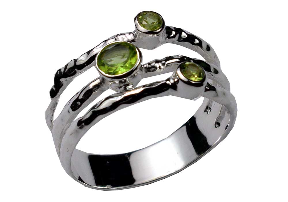 Ring Staggard Design With Three Circle Peridot Stones 925 Sterling Silver 925 Hallmarked