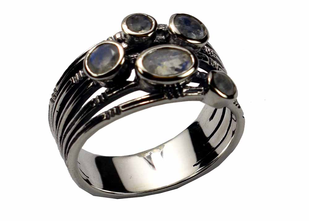 Silver Ring Cluster of Stones in Cut RainbowColour 925 Sterling Silver 925 Hallmarked