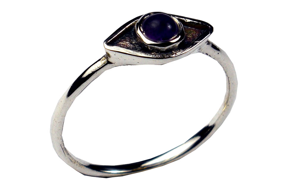 Silver Ring Eye With Centre Stone in Amethyst Colour 925 Sterling Silver 925 Hallmarked