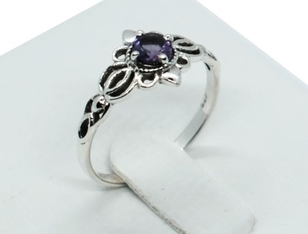 Silver Ring Flower Round Amethyst 925 Sterling Silver 925 Hallmarked