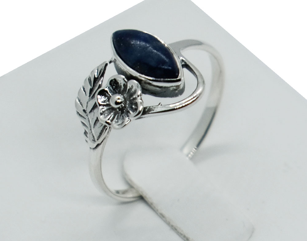 Silver Ring Flower and Leaf Marquise Lapis 925 Sterling Silver 925 Hallmarked