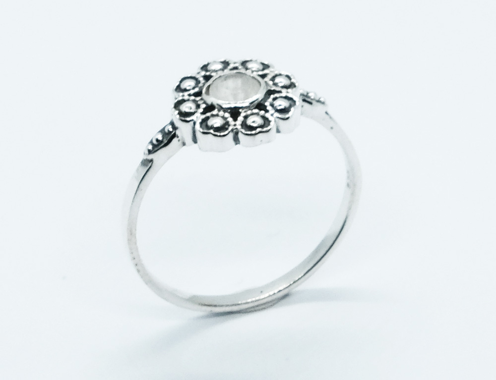 Sterling Silver 925 Hallmarked Ring Flower Design And Round Cut Moonstone