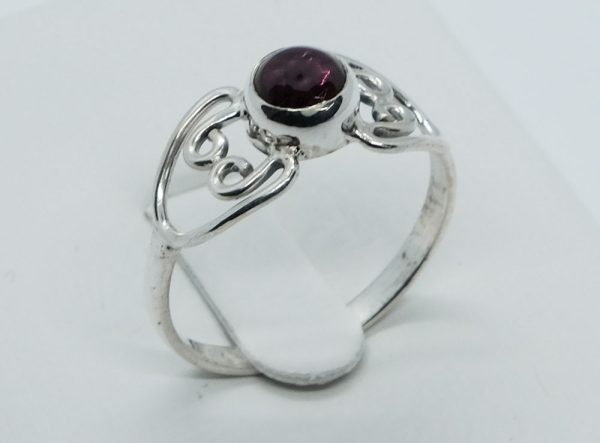 Sterling Silver 925 Hallmarked Ring Hearts Amethyst Round Cabochon 6x6 mm