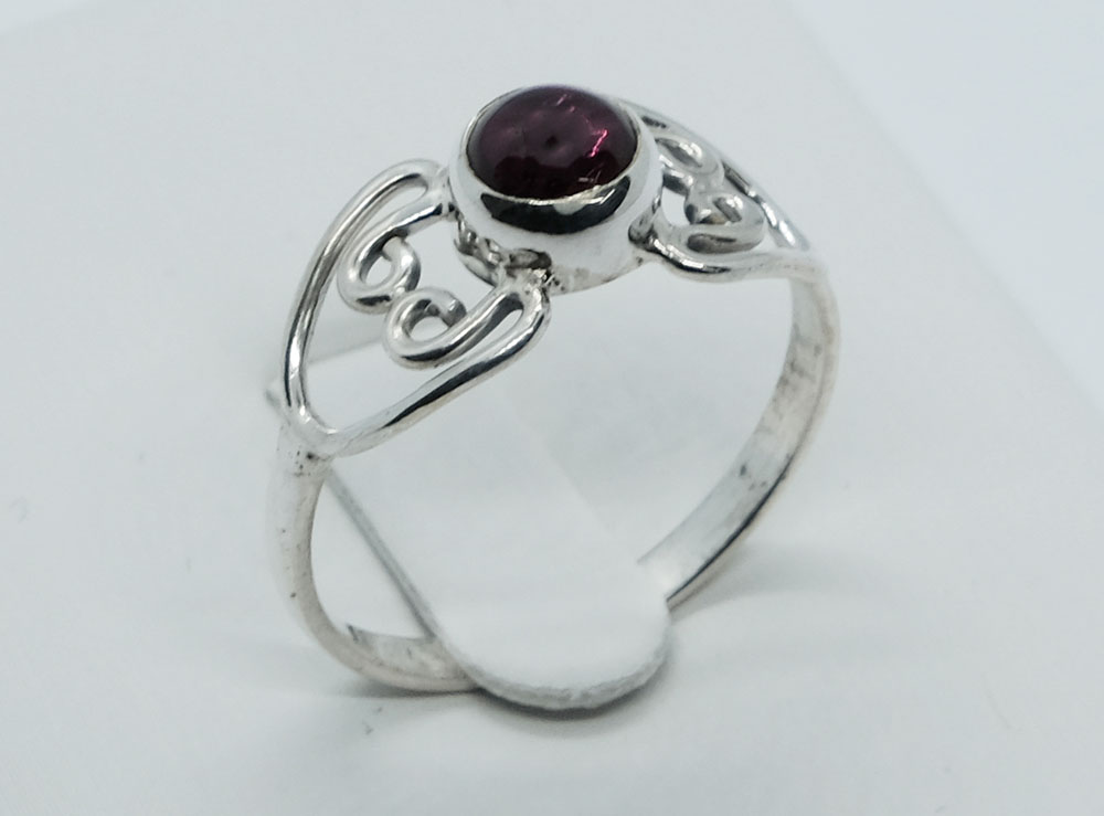 Sterling Silver 925 Hallmarked Ring Hearts Amethyst Round Cabochon 6x6 mm