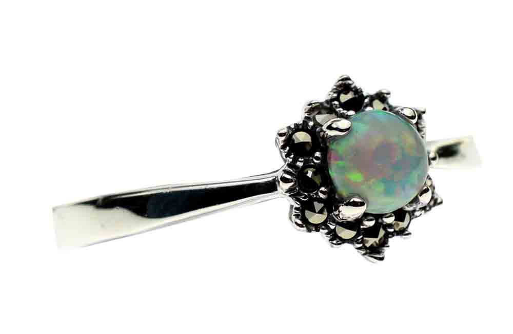 Ring Marcasite Fire Opal Circle Stone With Floral Design 925 Sterling Silver 925 Hallmarked