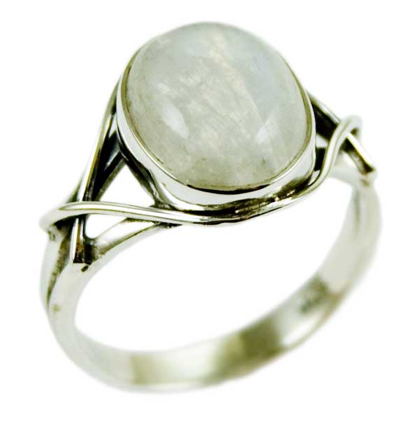Ring Rainbow Cabochon Oval Plain Stone With Criss Cross Design On Sides 925 Sterling Silver 925 Hallmarked