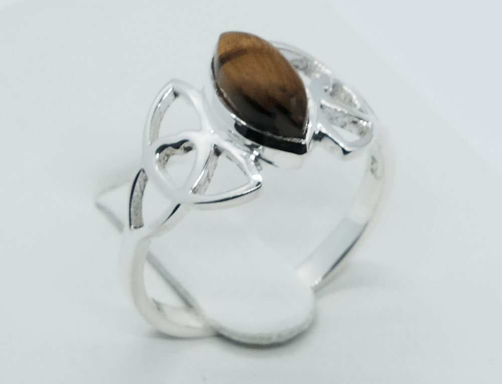 Sterling Silver 925 Hallmarked Ring Marquise Cut Tiger Eye 5x10mm
