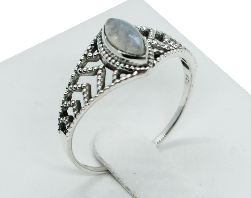 Silver Ring Marquise Moonstone 925 Sterling Silver 925 Hallmarked