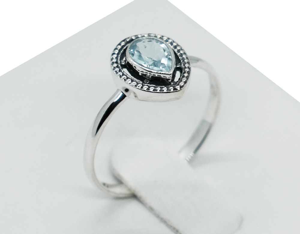 Silver Ring Peardrop Blue Topaz 925 Sterling Silver 925 Hallmarked