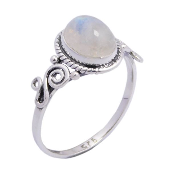 Ring Rainbow Circle Cut Stone With Rope Style Border And Swirl Design At The Sides. Approx Weight Is 7 Grams 925 Sterling Silver 925 Hallmarked