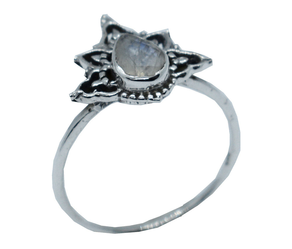 Sterling Silver 925 Hallmarked Ring Flower Design With Rainbow Teardrop Stone