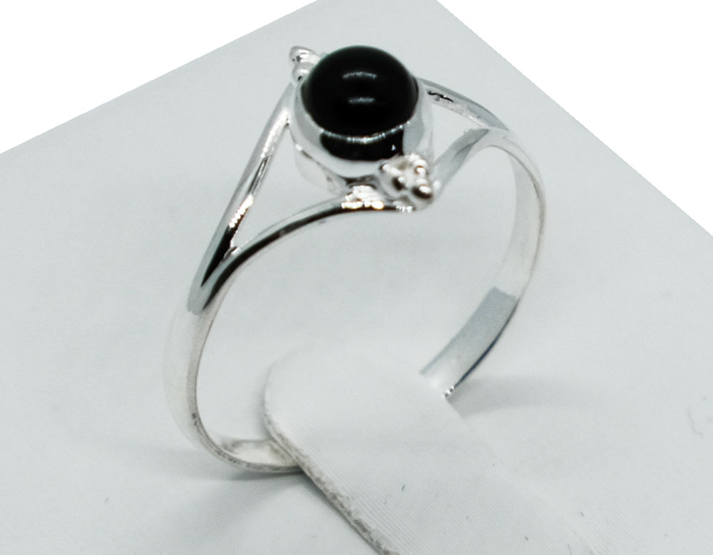 Silver Ring Round Black Onyx 925 Sterling Silver 925 Hallmarked