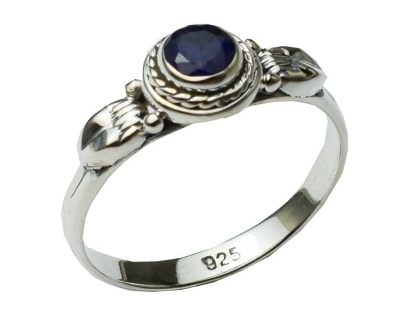 Ring Sapphire Cut Circle Stone With Leaves Design On Side 925 Sterling Silver 925 Hallmarked