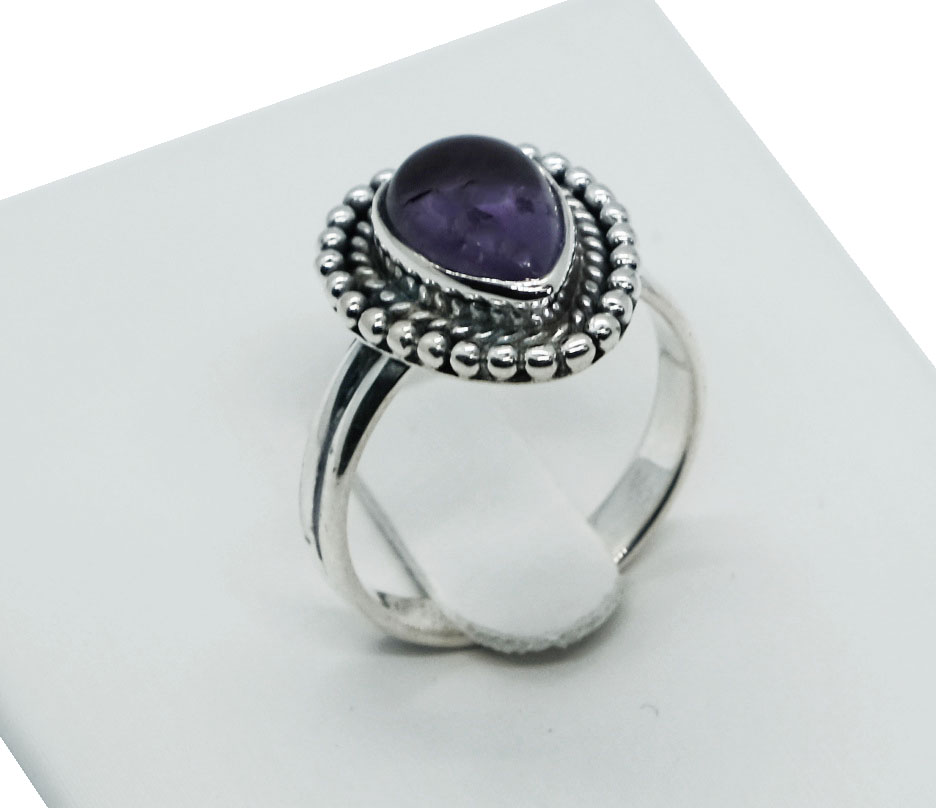Teardrop Amethyst Silver Ring