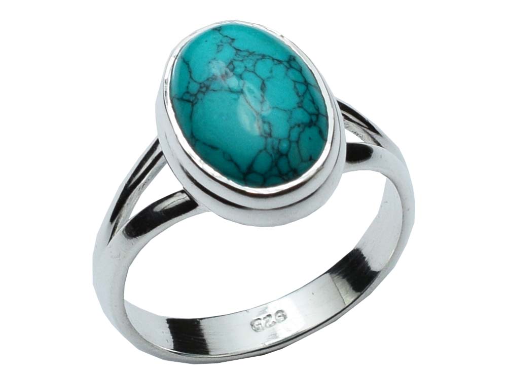 Ring Turquoise Cab Oval Plain Stone 925 Sterling Silver 925 Hallmarked