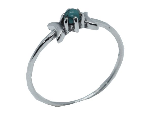 Sterling Silver 925 Hallmarked Ring With a Central Round Turquoise Stone Flanked By Two Halfmoon Sterling Silver 925 Hallmarked