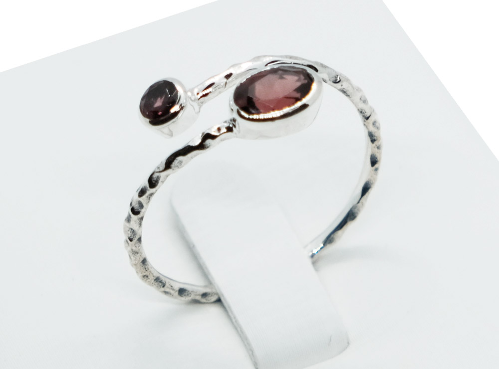 Silver Ring Twist With Oval and Round Cut Garnet Stones 925 Sterling Silver 925 Hallmarked