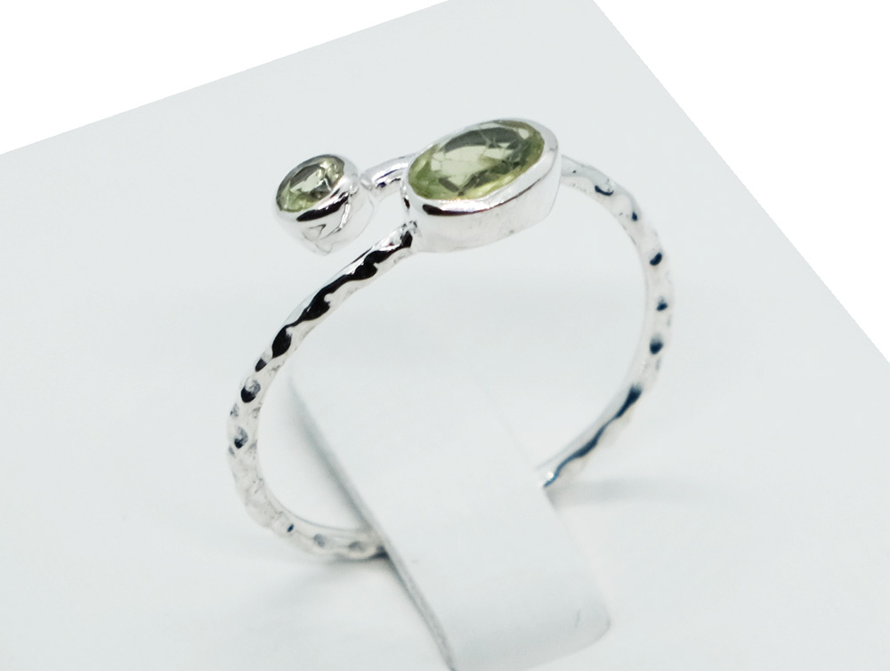 Silver Ring Twist With Oval and Round Cut Peridot Stones 925 Sterling Silver 925 Hallmarked