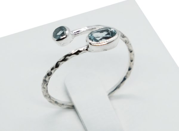 Silver Ring Twist With Oval and Round Cut Topaz Stones 925 Sterling Silver 925 Hallmarked