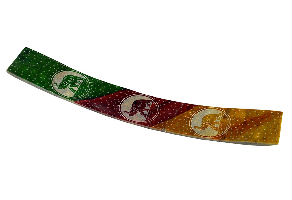 Soapstone Incense Tray 10X1.5" With Elephant Design and Multicolour