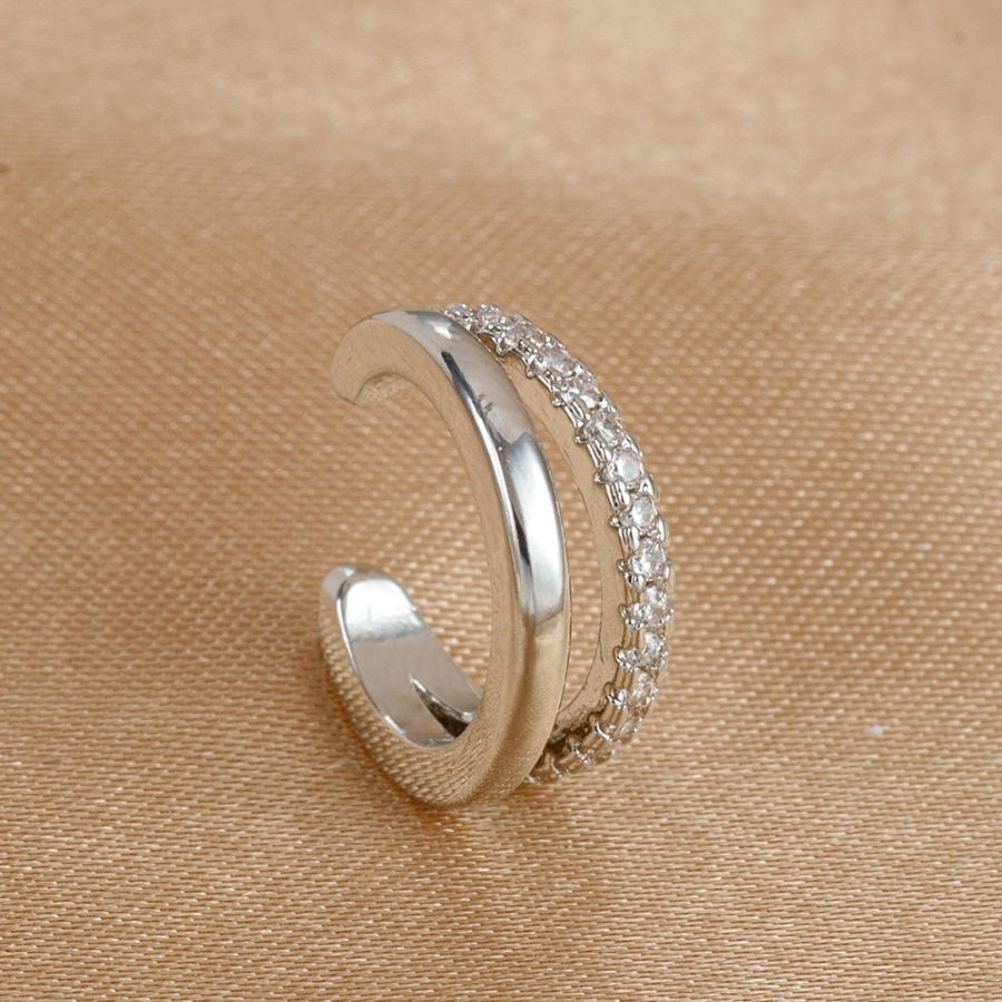 Stud C Shape Design Silver Colour With Zircon Stones 1 Piece