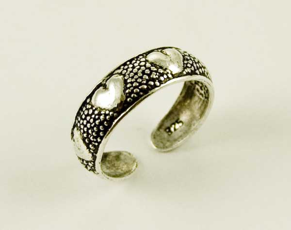 Toe Ring Silver Band Hearts