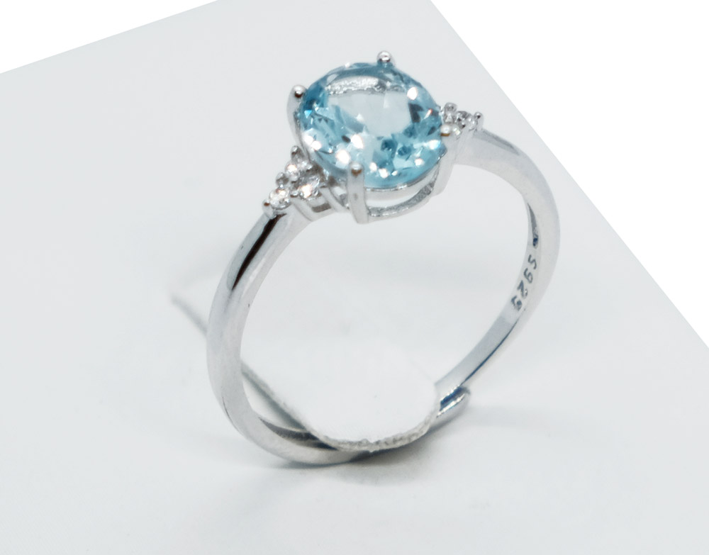 Silver Ring Topaz, Adjustable Size (N-R)