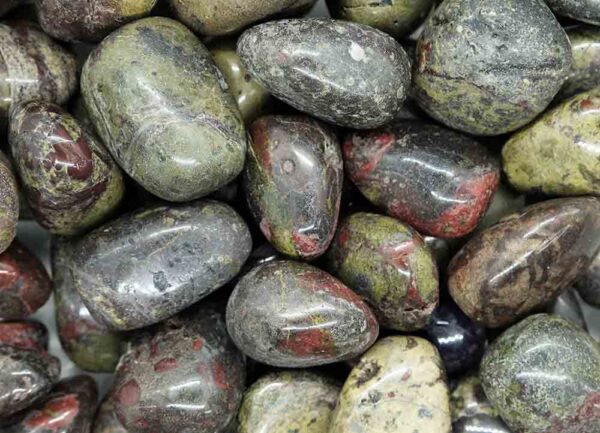 Dragon's Blood, also called Dragon Stone is a beautifully patterned Epidote (green) with Red Piedmontite grown throughout. It is called the stone of patience, calm and strength. Said to be a powerful manifestation tool and bring confidence and self-healing to the user.
